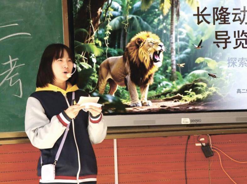 课堂气氛在第三组登场时瞬间欢腾起来。他们将广州长隆野生动物园“搬”进了教室,在介绍奇妙的动物世界与复杂的生态系统时,更有同学现场惟妙惟肖地模仿起动物的姿态与叫声。生动有趣的演绎引得掌声与笑声不断,课本上关于物种多样性及栖息地的知识,在轻松愉快的氛围中变得直观深刻。